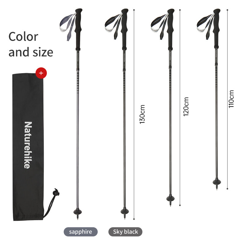 • Hybrid Construction: The 3K carbon fiber (used in the upper section) and 7075 aluminum alloy (used in the lower sections) provide an optimal balance of strength, durability, and lightweight performance. This combination ensures a sturdy yet comfortable trekking experience.