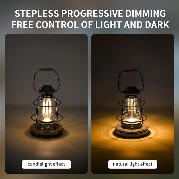• Adjustable Brightness – Stepless dimming with two light modes: gentle natural light and warm candlelight effect