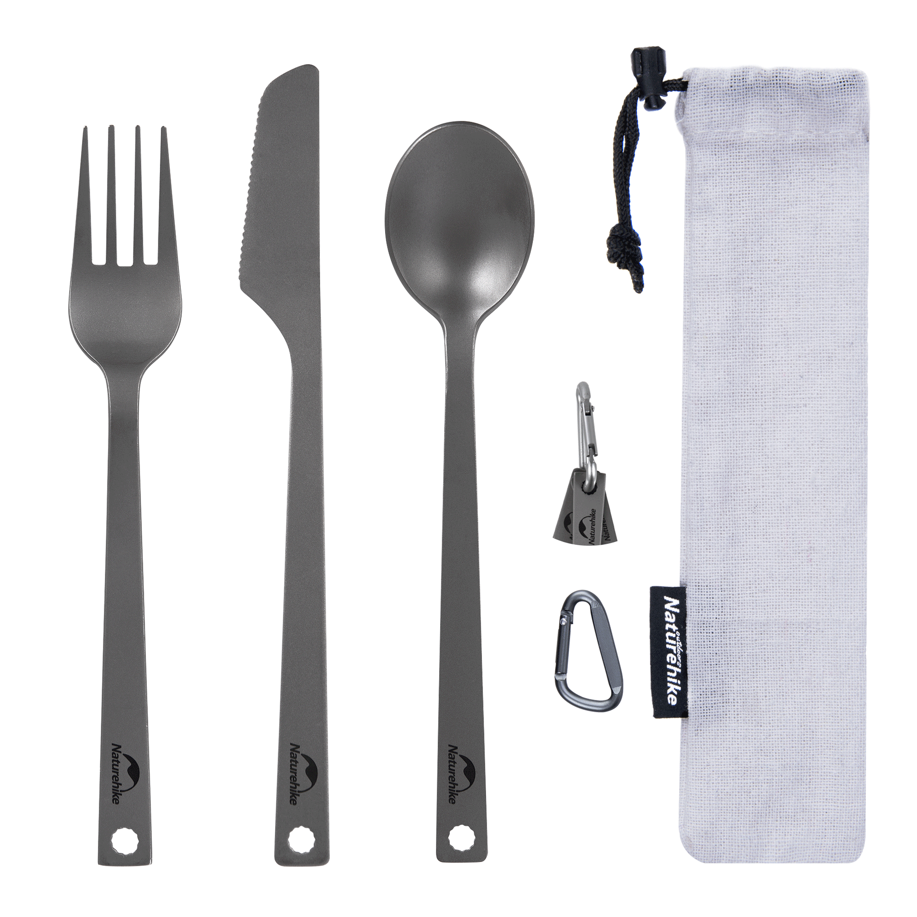 Portable 3 Piece Set – Includes a titanium spoon, fork, and knife that can be clipped together using the included carabiner for easy organization and quick access