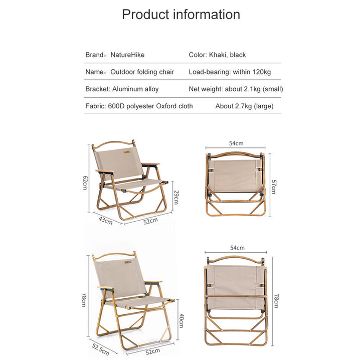 Naturehike Muebles al aire libre Aluminio Grano De Madera Silla Plegable NH19Y002-D