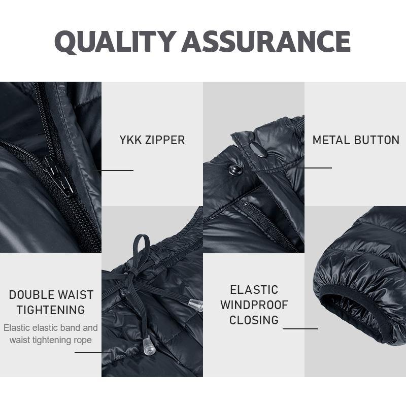 • High-Quality Material: Outer and inner layers are made of 20D 400T nylon, waterproof, skin-friendly, and comfortable.