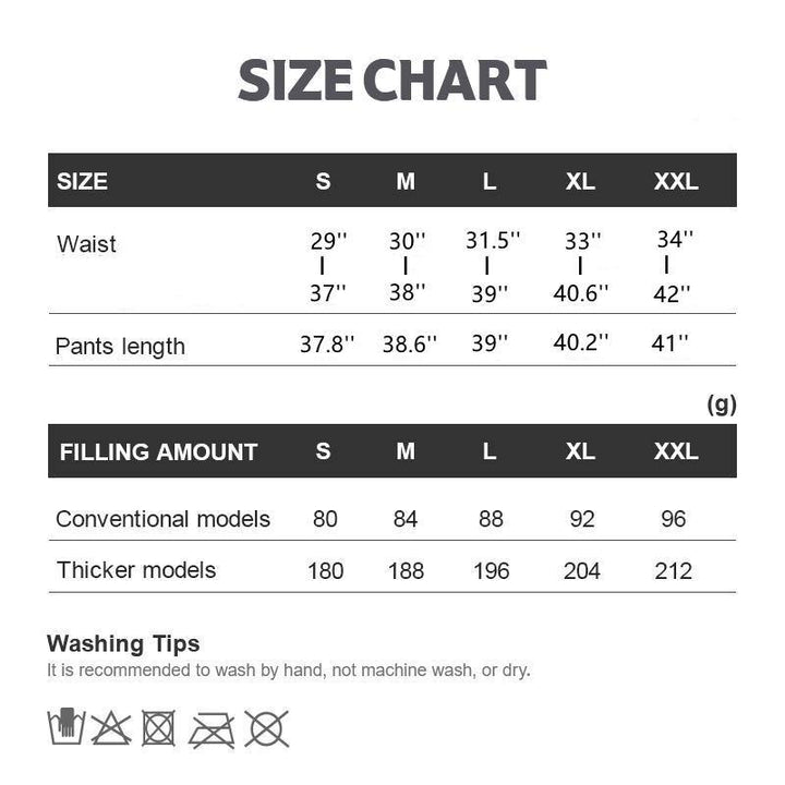 • Filling: 90% goose down, 800 fill power. Ultra-Lightweight and Portable: These down pants are designed to be lightweight and compact, weighing only 8.8 ounces/250 grams. Comes with a storage bag, perfect for backpacking, camping, and hiking.