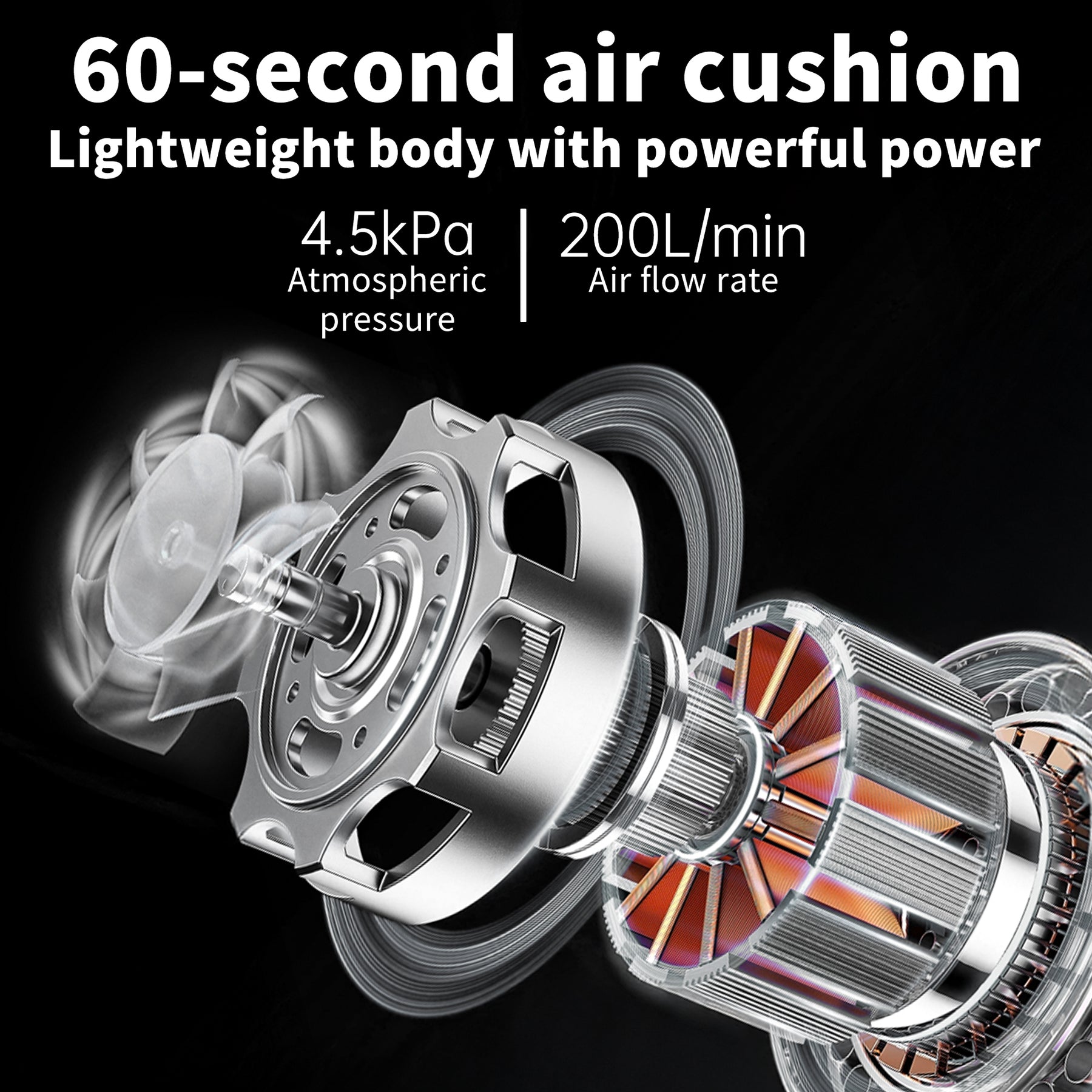 • Ultra-Compact Yet Powerful Performance - Weighing only 104g and measuring 4.5 × 4.6 × 5.1 cm, it delivers up to 4.5 kPa pressure and 200 L/min airflow, balancing portability with strong performance.