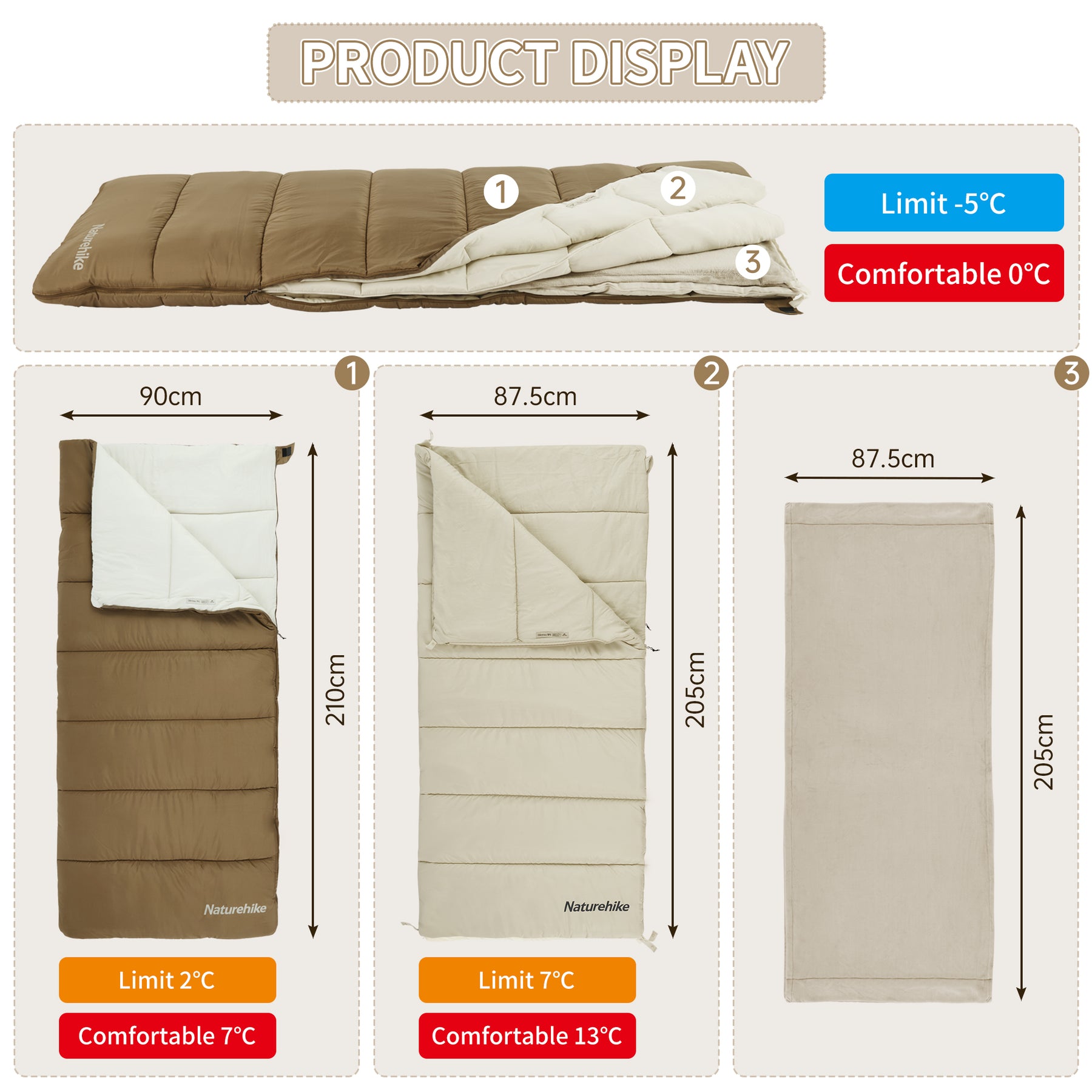 Use the complete sleeping bag for cold conditions down to 0°C. In milder spring and autumn temperatures, separate the layers for adjustable warmth. During summer, each layer can be shared with friends or family for light and breathable comfort.