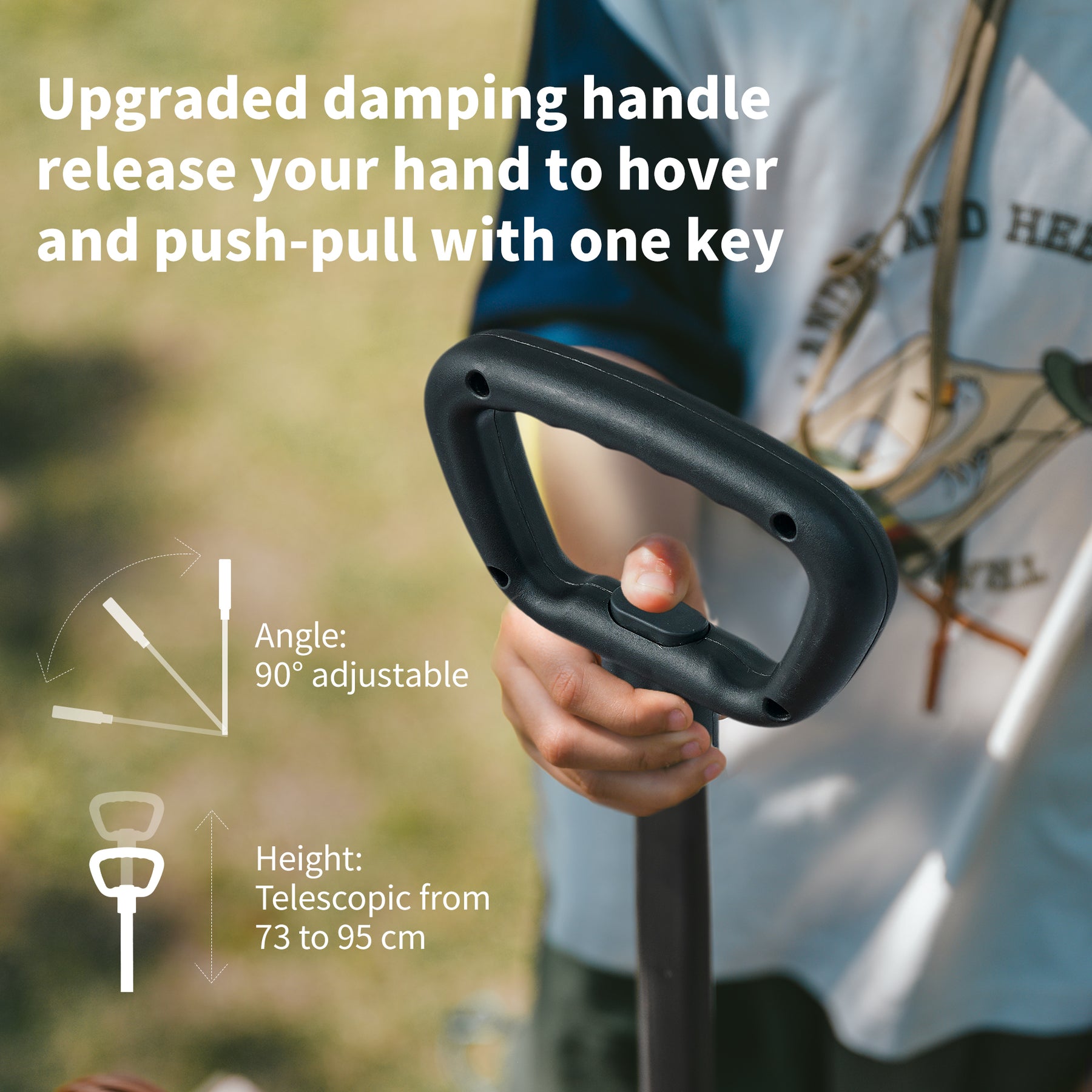 • 360° Quiet All-Terrain Wheels – U-shaped, noise-reducing PU wheels move smoothly across gravel, sand, slopes, grass, and other uneven surfaces for easy outdoor transport