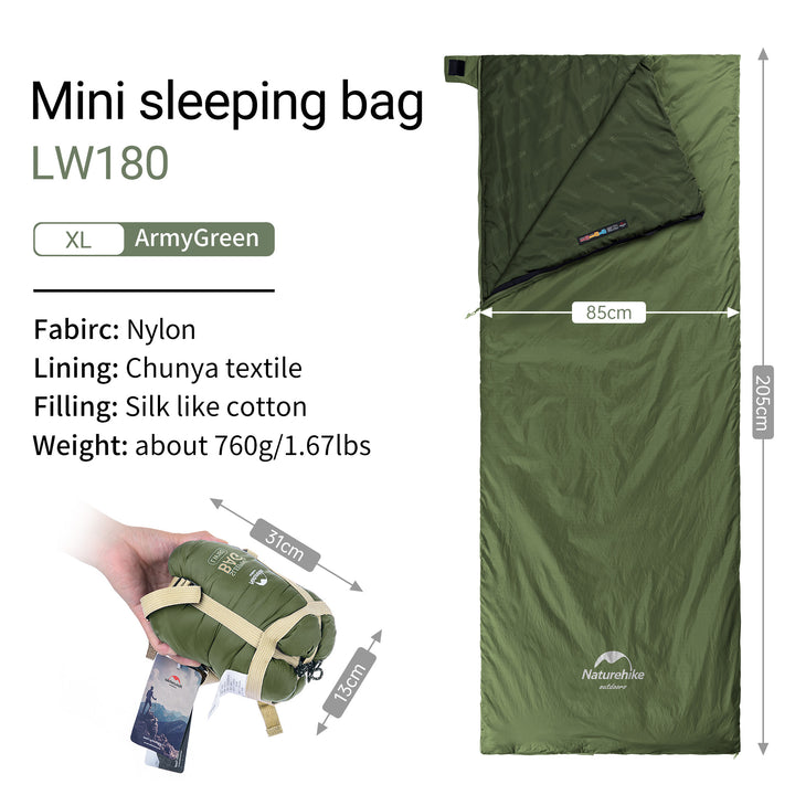 The LW180 Mini Sleeping Bag is the ultimate choice for adventurers who prioritize lightweight gear, comfort, and versatility. Whether you're exploring the outdoors or traveling light, this sleeping bag ensures a cozy and restful sleep wherever you go.