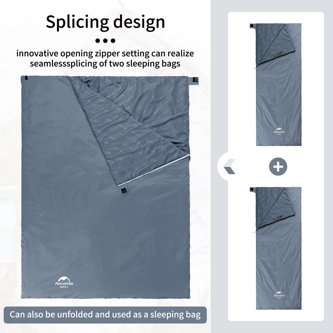 3. Versatile Design: Can be fully opened and used as a blanket or spliced with another sleeping bag to create a double sleeping bag, providing flexibility for various needs.